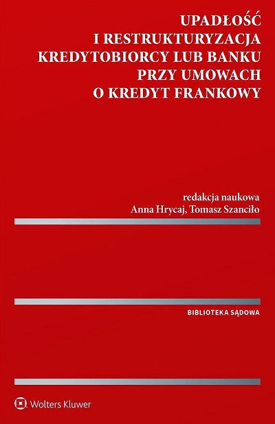 Publikacja omawia skutki otwarcia postępowania restrukturyzacyjnego oraz ogłoszenia upadłości banku lub kredytobiorcy dla losów umowy o kredyt frankowy. Odnoszą się one m.in. do takich zagadnień jak: kwestia dopuszczalności dochodzenia przez pokrzywdzonego kredytobiorcę wynagrodzenia za korzystanie z kapitału wpłaconego na podstawie umowy kredytu zawierającej niedozwolone postanowienia umowne; ryzyko kursowe oraz wielopodmiotowość kredytu frankowego; zawieszanie i podejmowanie postępowania zawieszonego na skutek wszczęcia przymusowej restrukturyzacji banku lub ogłoszenia jego upadłości; przedawnienie roszczeń majątkowych związanych z kredytem konsumenckim denominowanym lub indeksowanym w walucie obcej w kontekście upadłości lub restrukturyzacji strony umowy kredytowej. Autorzy odwołują się do aktualnego orzecznictwa Trybunału Sprawiedliwości Unii Europejskiej, Sądu Najwyższego oraz sądów powszechnych w sprawach upadłościowych, w których dochodzone są wierzytelności wynikające z umowy o kredyt frankowy. Książkę przygotowało grono wybitnych autorów - uznanych ekspertów posiadających znaczny dorobek naukowy, jak i ugruntowane doświadczenie praktyczne w dziedzinie prawa upadłościowego i restrukuryzacyjnego. Publikacja przeznaczona jest dla praktyków: sędziów, prokuratorów, adwokatów, radców prawnych, doradców podatkowych, a także konsumentów tzw. „kredytów frankowych”.