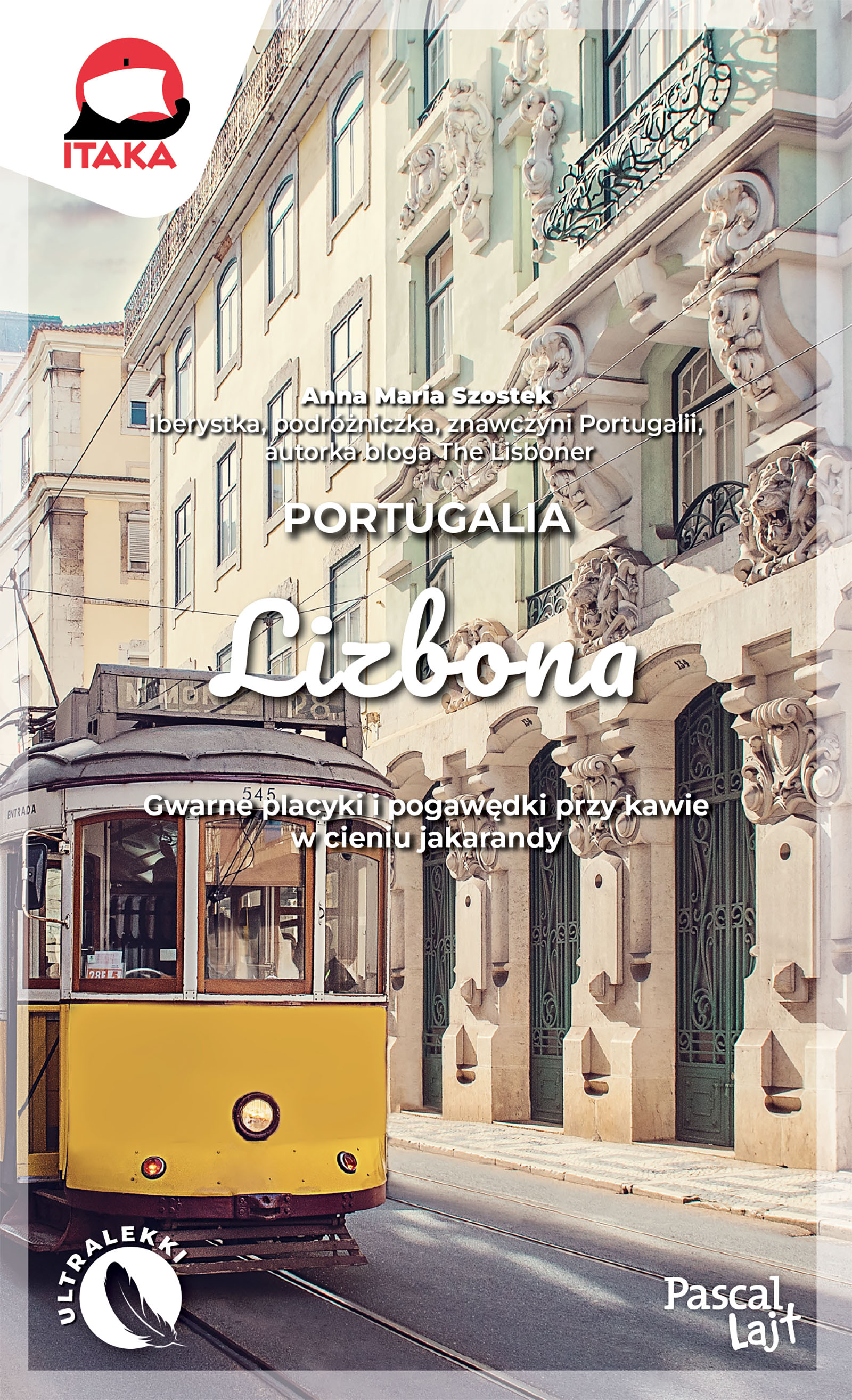 Na okładce pod nazwą autorki: iberystka, podróżniczka, znawczyni Portugalii, autorka bloga The Lisboner. Na okładce: Gwarne placyki i pogawędki przy kawie w cieniu jakarandy. Na stronie tytułowej i okładce logo ITAKA. U dołu okładki: ultralekki.