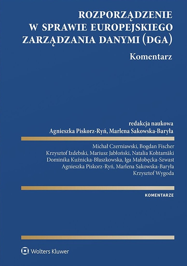 Akt w sprawie zarządzania danymi (Data Governance Act – DGA) to przełomowa regulacja, która stanowi podstawę strategii Unii Europejskiej dotyczącej tworzenia jednolitego rynku danych. Jej celem jest zwiększenie dostępności danych, jak również ułatwienie ich ponownego wykorzystywania przy jednoczesnym zapewnieniu wysokiego poziomu zaufania i ochrony danych osobowych oraz tajemnic handlowych. Komentarz szczegółowo omawia przepisy DGA i ułatwia jego bezpośrednie stosowanie w polskim porządku prawnym. Publikacja została przygotowana przez zespół ekspertów z zakresu prawa ochrony danych, nowych technologii i prawa europejskiego, którzy mają doświadczenie w prawnej obsłudze procesów zarządzania danymi zarówno w sektorze prywatnym, jak i publicznym.