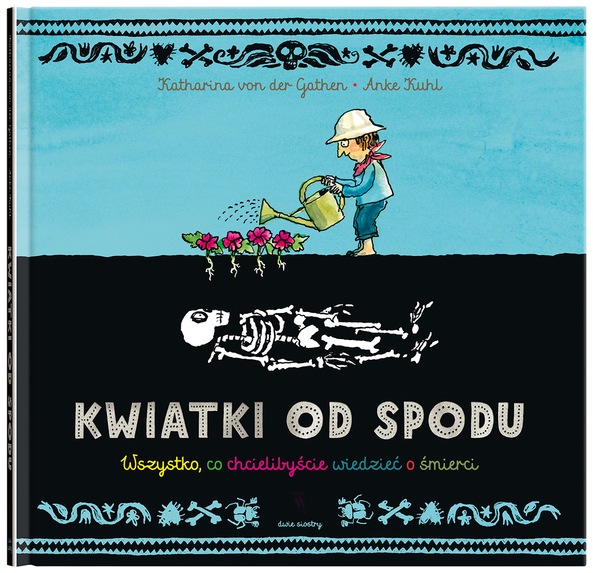 „Kwiatki od spodu” to książka dla dzieci o wszystkim, co związane ze śmiercią. O umieraniu, o tym, co je poprzedza, i o tym, co po nim następuje. Znajdziecie tu solidną dawkę wiedzy i dużo ciekawostek. Niektóre informacje was zaskoczą, inne wzruszą, a jeszcze inne rozbawią. O czym przeczytacie w tej książce? O różnych rodzajach śmierci – także tych najdziwniejszych. O strachu przed śmiercią i o innych związanych z nią uczuciach. O tym, co się dzieje z ciałem zmarłej osoby. O różnych rodzajach pogrzebów i grobów. O żałobie i o tym, jak sobie z nią radzić. O zwyczajach pogrzebowych w różnych czasach, kulturach i religiach. A nawet o fantastycznych postaciach związanych ze śmiercią, takich jak zombie, wampiry czy mumie. Znajdziecie tu także rozmowy z osobami, które śmiercią zajmują się zawodowo: lekarzem, pracownikami domu pogrzebowego, ogrodnikiem cmentarnym czy towarzyszką w żałobie.