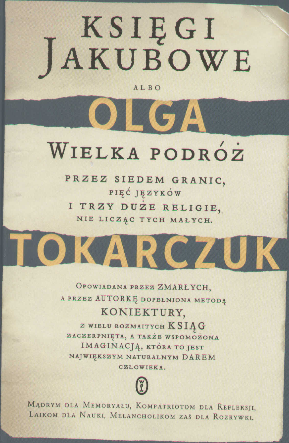 (...)ale także społecznym, religijnym, biograficznym itd. Z całą również pewnością zasłużyła na kolejną nagrodę Nike, za ogromną wnikliwość, rzetelność oraz wiedzę, którą musiał specjalnie dla potrzeb tworzenia "zdobyć". "Księgi Jakubowe" to napisana z imponującym rozmachem kilkuset stronnicowa powieść epicka, dająca możliwość szerokiej interpretacji. Jej fabuła sięga roku 1752, w którym to na Podole przybywają kasztelanowa Katarzyna Kossakowska wraz z poetką Elżbietą Drużbacką. W Rohatyniu na kolacji powitalnej wśród zaproszonych licznych gości znajduje się także proboszcz miejscowej parafii, autor pierwszej polskiej encyklopedii – Benedykt Chmielowski. Elżbieta bardzo szybko nawiązuje kontakt z tak jak ona rozmiłowanym w księgach księdzem. Swą rozpoczętą podczas kolacji dysputę będą dalej kontynuować w listach. W nieco późniejszym czasie na Podolu pojawia się też młody Żyd, niejaki Jakub Lejbowicz Frank. Ten tajemniczy przybysz ze Smyrny swą dość kontrowersyjną ideologią zaczyna dzielić zamieszkującą na Podolu społeczność żydowską. Jak nietrudno się zorientować "Księgi Jakubowe" nie są zwykłą powieścią. To refleksyjne, nieco mityczne dzieło sięgające swą historią wieku XVIII, poprzez które wybitna pisarka stara się poszukać odpowiedzi na pytania dotyczące kształtu naszej dzisiejszej części Europy. Ponadto czerpiąc niemalże garściami z tradycji powieści historycznej w fenomenalny sposób przedstawiła w niej obraz naszej dawnej ojczyzny, która stanowiła wówczas bezpieczny azyl nie tylko dla chrześcijan, ale także wyznawców judaizmu czy islamu. To moim zdaniem powieść dla prawdziwego czytelnika-pasjonata. Jeżeli ktoś chce ją przeczytać dla zasady to niech na starcie da sobie zwyczajnie z nią spokój.