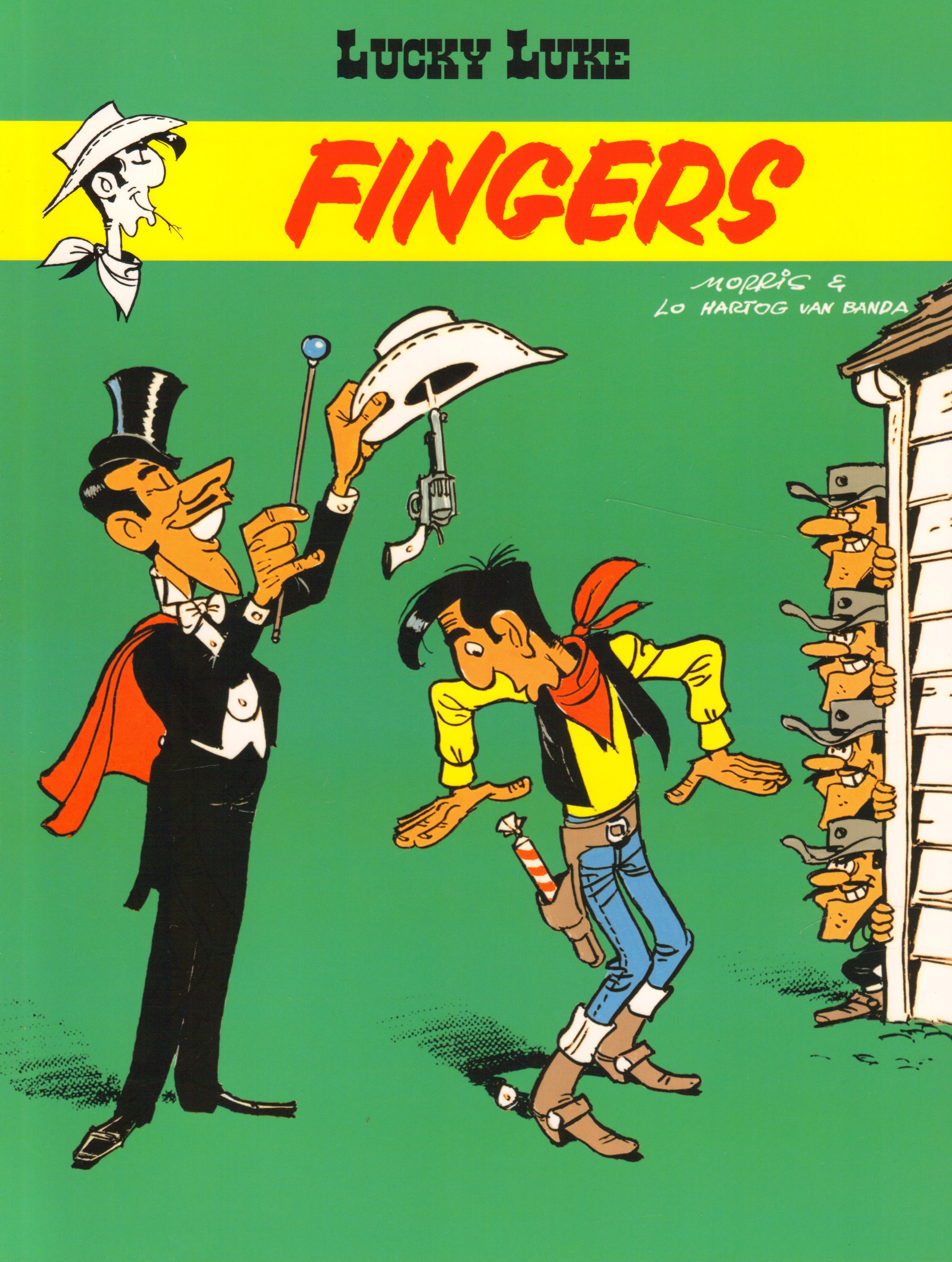 Kolejny zeszyt komiksu z przygodami słynnego rewolwerowca. Dla dobrego iluzjonisty nie ma rzeczy niemożliwych - potrafi uwolnić się z więzów, uciec z więzienia, niepostrzeżenie wyjąć z czyjejś kabury rewolwer czy nawet spętać ozdobnym sznurkiem grupę wojowniczych Indian. Właśnie tak świetnym prestidigitatorem jest Fingers - i na pewno zdobyłby sławę na deskach wielu scen, gdyby nie pewna przywara, przez którą wciąż wpada w kłopoty. Lucky Luke będzie musiał bardzo się natrudzić, aby zapanować nad przesympatycznym, lecz niezwykle kłopotliwym magikiem Fingersem.