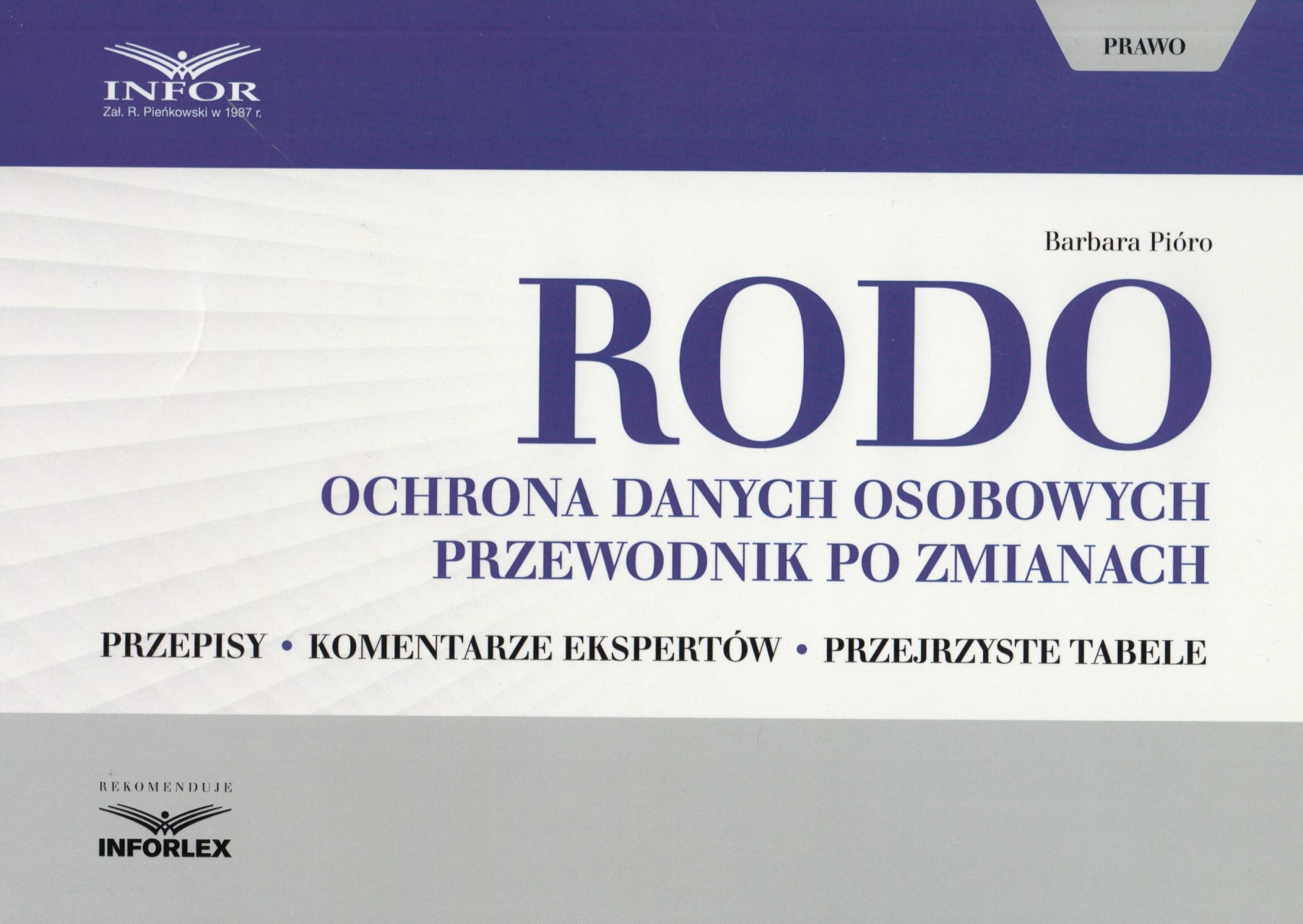 RODO : ochrona danych osobowych : przewodnik po zmianach : przepisy, komentarze ekspertów, przejrzyste tabele / Barbara Pióro. - [Stan prawny na 10 października 2017 r.]. - Warszawa : INFOR PL, cop. 2017. - 158, [2] strony ; 24 cm.