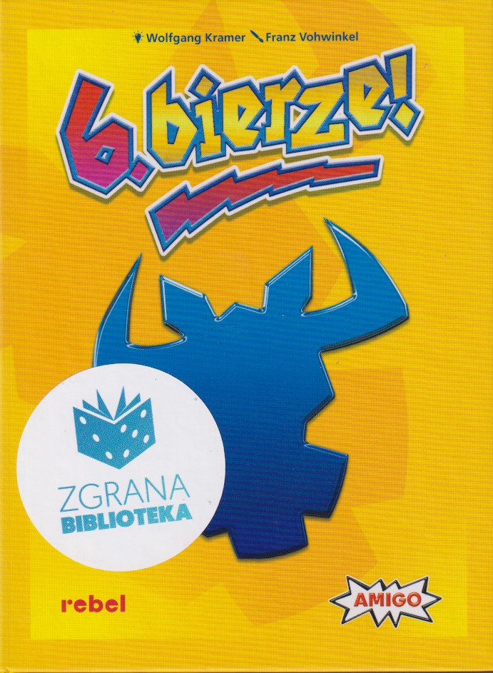 6. bierze! / [autor] Wolfgang Kramer ; [ilustracje] Franz Vohwinkel. - Edycja jubileuszowa. - Gdańsk : Rebel, © 2024. - 1 gra (104 karty, 13 kart specjalnychpomysłu fanów, 16 kart specjalnych do wariantu "Ubij bawoła", plansza bawoła, notes, ołówek, gumka) : karton, tektura, kolor ; w pudełku 16x12x5 cm + instrukcja (26 stron : ilustracje ; 14 cm).