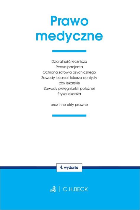 Książka adresowana jest do przedstawicieli zawodów medycznych, jak i prawników uczestniczących w sprawach medycznych, dla których znajomość obowiązujących przepisów stanowi warunek prawidłowego wykonywania zawodu. Kolejne wydania publikacji uwzględniają najnowsze zmiany, przez co zapewniają bieżącą znajomość prawa.