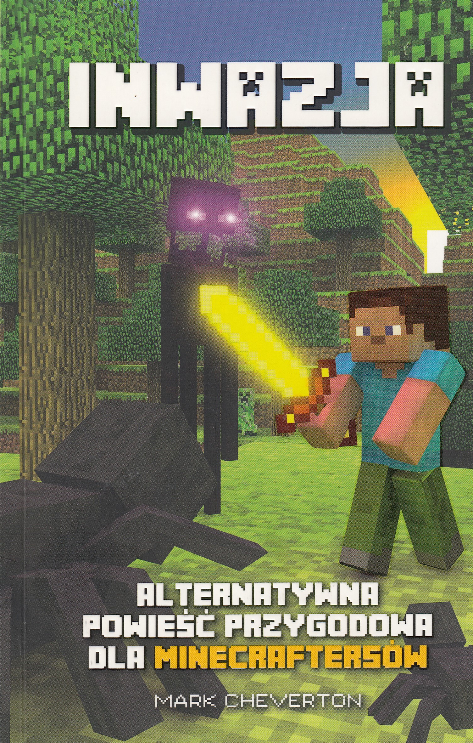 Pierwsza część cyklu. Kolejny tom nosi tytuł "Bitwa : powieść przygodowa inspirowana grą Minecraft". Powieść fantastyczno-przygodowa. Razem z głównym bohaterem czytelnik przenosi się w świat gry Minecraft, który nie jest już tylko grą, ale prawdziwym światem, pełnym niebezpieczeństw, w którym trzeba walczyć o przetrwanie. Główny bohater zostaje w grze uwięziony, odczuwa ból, głód, zimno. Książka porusza temat konfrontacji dobra ze złem, przyjaźni, wzajemnej pomocy, współodczuwania. Nie trzeba znać gry.