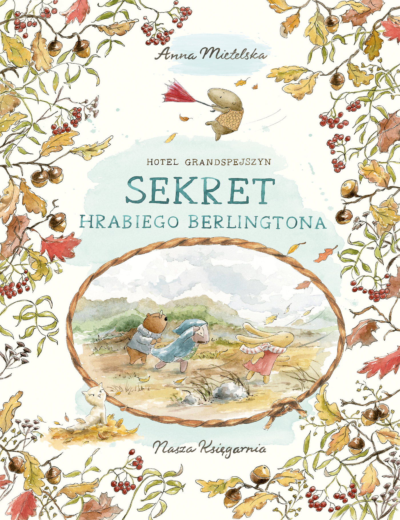 Drugi tom cyklu. Do Zielonej Kotliny przyszła jesień. Mieszkańcy Hotelu Grandspejszyn rozkoszują się spokojem, sącząc sok z berberysu Łilkinsona i podjadając marmoladę dyniową Elli. Życie nie mogłoby być lepsze… lecz pewnego dnia przed hotel zajeżdża hrabina Eleonora Berlington. Arystokratka ma trudne usposobienie i daje się we znaki nieszczęsnym gospodarzom - podobnie zresztą jak jej hałaśliwy, dymiący kabriolet. To jednak nie wszystko, gdyż coś dziwnego zaczyna dziać się w przyrodzie. Kotlinę trapią ulewne deszcze, porywiste wichry i ogniste wiry… czyżby natura w ten sposób okazywała swój gniew? Kto i czym zawinił? Jak naprawić wyrządzoną krzywdę? Losy świata znów spoczęły w bardzo małych łapkach… Poprzedni tom nosi tytuł "Tajemnica Hotelu Grandspejszyn".