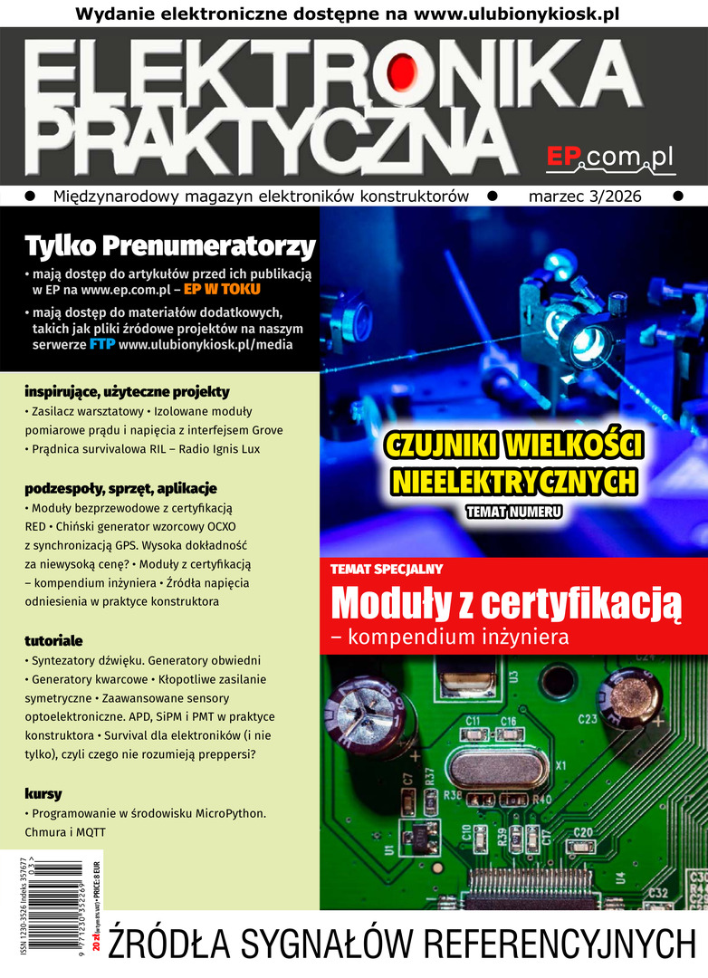 Miesięcznik. "Elektronika Praktyczna" jest czasopismem, którego grupę docelową stanowią specjaliści, głównie konstruktorzy o wykształceniu co najmniej średnim, których działalność zawodowa lub wyjątkowo zaawansowane zainteresowania wymagają świetnej orientacji w zagadnieniach współczesnej elektroniki, ustawicznego śledzenia trendów rozwojowych tej gałęzi techniki oraz stosowania najnowszych rozwiązań.