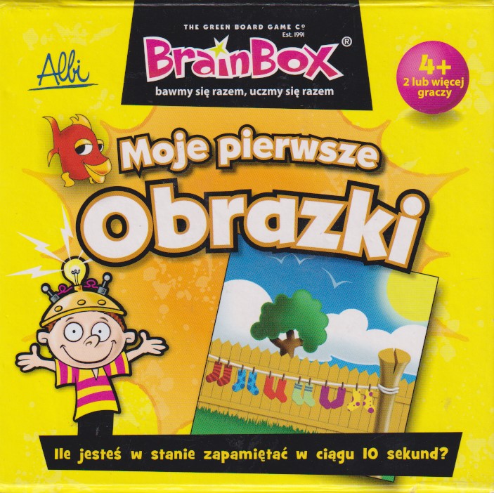BrainBox : moje pierwsze obrazki. - Kraków : Albi Polska, © 2016. - 1 gra (71 kart, kostka, klepsydra) : karton, tektura, plastik, kolor ; w pudełku 12x12x12 cm + instrukcja (1 karta : ilustracje ; 9 cm).
