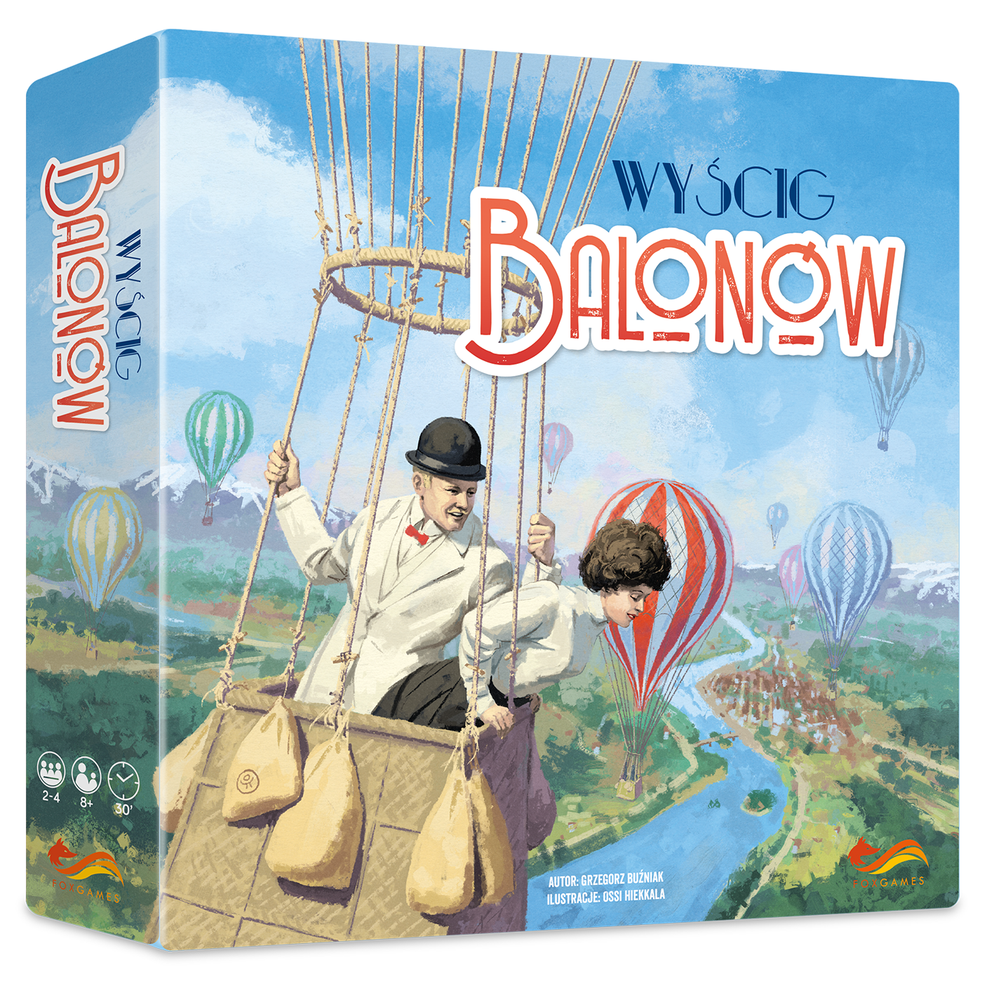 GRA PLANSZOWA. Najsłynniejszy wyścig balonów właśnie się rozpoczyna, a wypełnione gorącym powietrzem czasze wyniosą śmiałków wysoko ponad tereny Starego Kontynentu. Uważaj na porywiste wiatry, niebezpieczne burze i inne obiekty latające! Czy zdecydujesz się na szybki lot do celu? A może skusisz się na odwiedziny legendarnych miast Europy i zdobędziesz dodatkowe punkty za doręczenie poczty dyplomatycznej? Zwycięży gracz, któremu nie zabraknie odwagi.