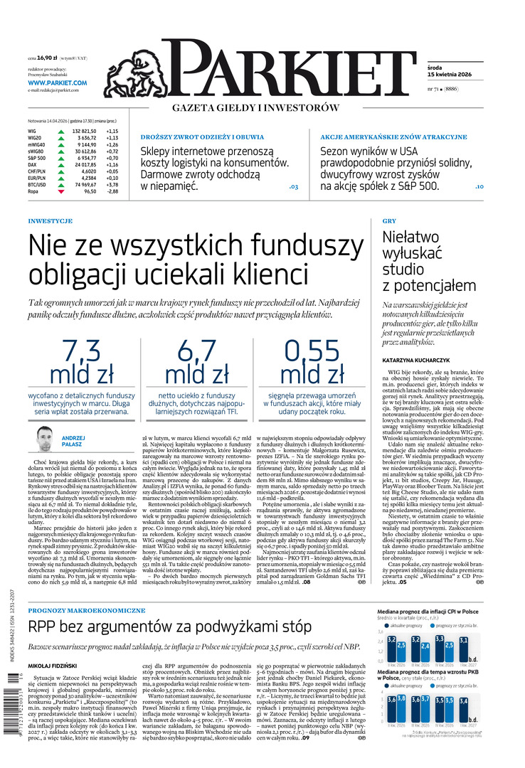 Newsroom gospodarczy zbiera, analizuje i zgłębia dla Państwa najważniejsze informacje ze świata finansów. Codzienne wydanie „Parkietu”, sześć dni w tygodniu, to kilkadziesiąt artykułów o emitentach, instytucjach finansowych, gospodarce. To również opinie, felietony i wywiady z najważniejszymi ludźmi krajowej i globalnej finansjery.