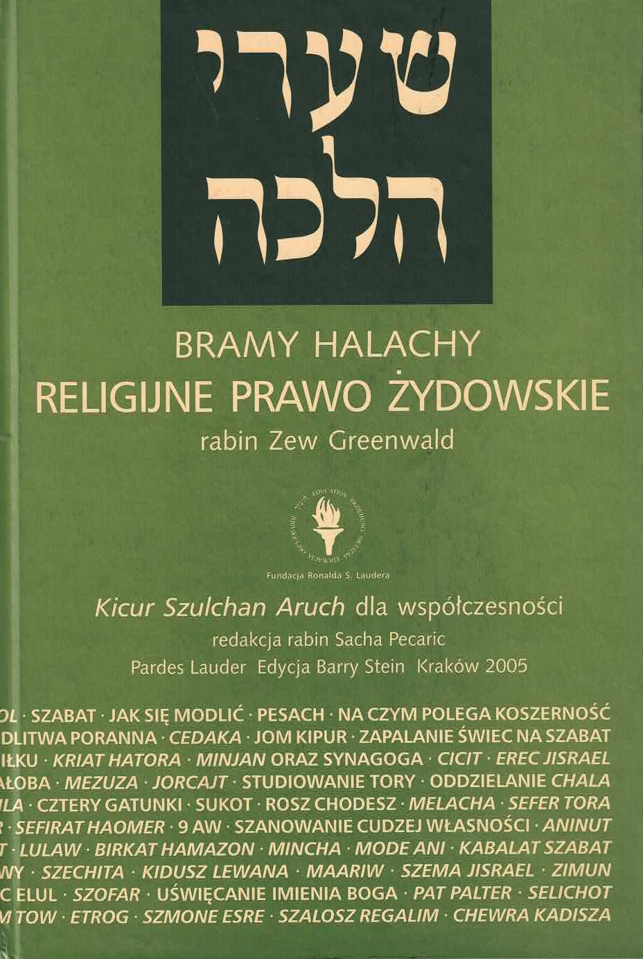 Pierwszy w języku polskim przewodnik po religijnym prawie żydowskim. Napisany w przejrzysty i zrozumiały sposób, niezwykle szczegółowy, obejmuje prawa na dni powszednie i święta, prawa koszerności, majątkowe i inne. Opisuje życie religijnego Żyda od rana do wieczora - i od narodzin do śmierci. Niezwykle cenne jest to, że praca, oparta na fundamentalnych dziełach halachy Szulchan aruch i Miszna berura, prezentuje przepisy prawa z uwzględnieniem realiów współczesności.